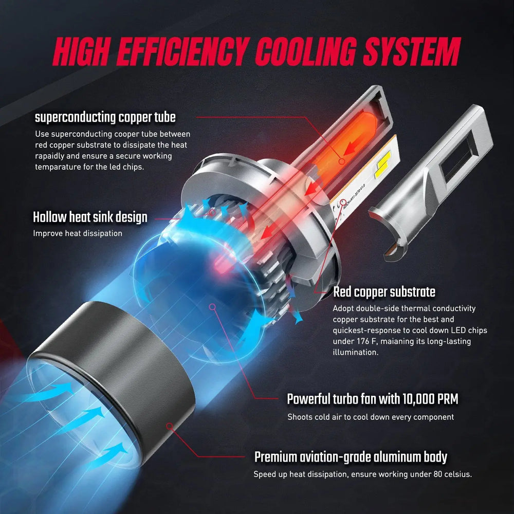 - Optimal cooling system & superior longevity: All in premium aviation aluminum body, combined with double-side thermal conductivity copper substrate technology, and built-in 10,000 PRM powerful turbofan for the highest efficient heat dissipation, extending a longer lifespan over 50,000 hours.