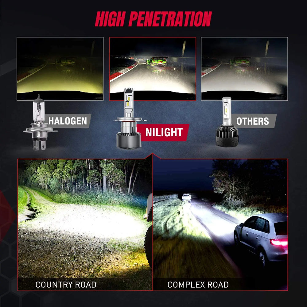 NIXMEN 2PCS H4/9003/HB2 LED Headlight Bulb 70W 8000-10000LM 350% Brighter Hi/Low Beam Upgraded LED Headlight Conversion Kit Halogen Lamp Replacement 6500K