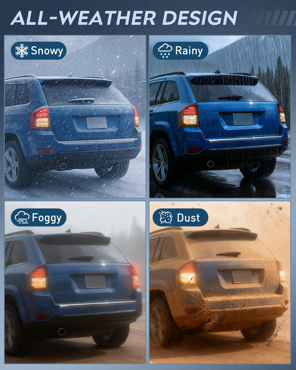 - Durability: The high-impact housing withstands shock and vibration. With fully sealed silicon prevents environmental damages including freezing, foggy, fading, corrosion, and provides reliable service in sorts of weather conditions such as rain, snow, or dust storms, enabling your car looks better and drive safer.