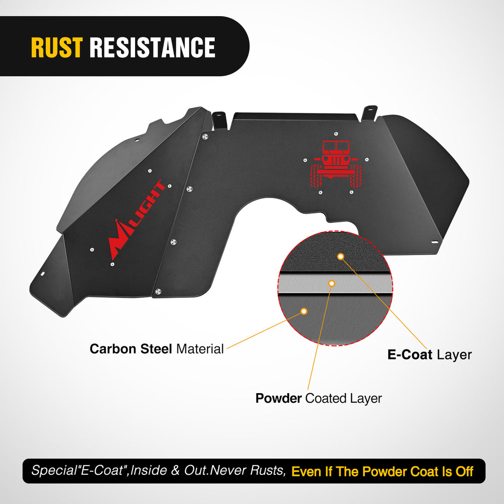 - Fitment: Nilight inner fender guards are compatible with 2018-2022 Wrangler JL & JLU (4-Door/2-Door)
