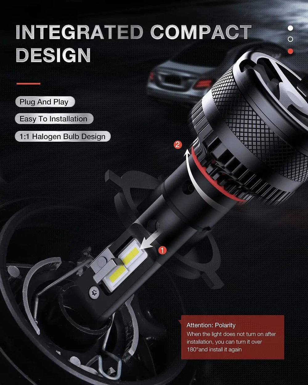 • Easy to install: The h4 led headlight bulb adopt 1:1 halogen bulb design. The driver is built into the headlight. They take up less space. The design with polarity signs can help you to install more easily and make you drive on the road quickly. Our products have polarity. When the light does not turn on after installation, you can turn it over 180°and install it again.