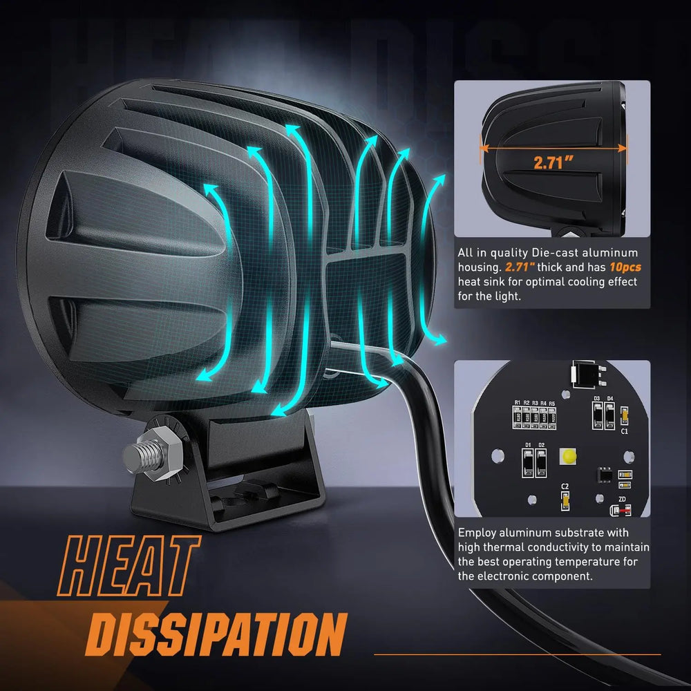 - Wide Application: 3 inch pod lights, perfect for motorcycle auliary lights, round led driving lights for Offroad led headlights for tractor, replacement for your factory fog lights of bumper, bicycle dirt bike SUV ATV Truck Jeep Boat Tractor Forklift etc.