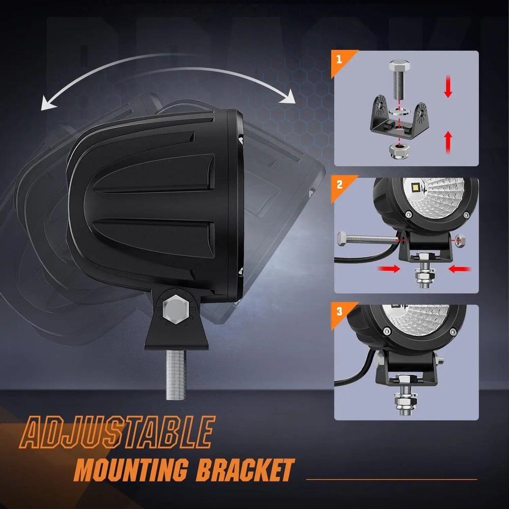 - Full Directions Mountable: Round led offroad lights comes with adjustable mounting brackets, can freely mount horizontally or vertically without changing lighting effect
