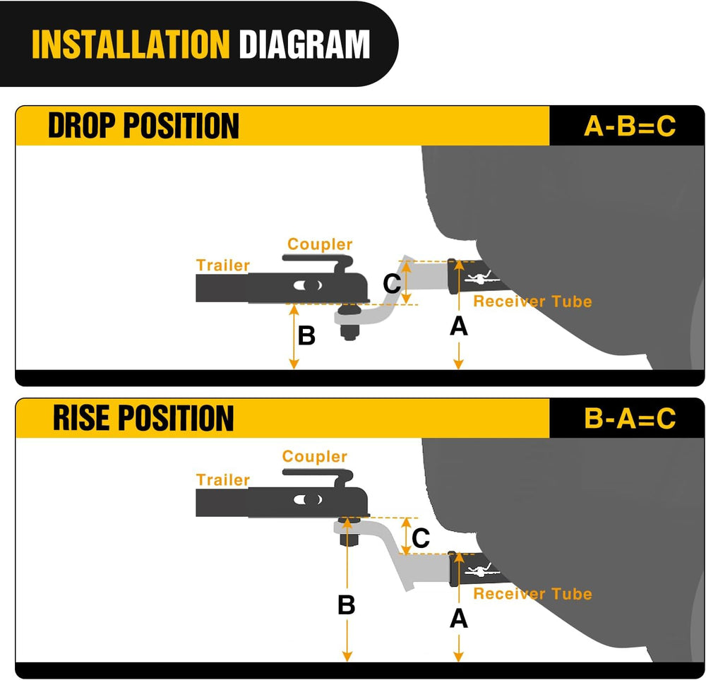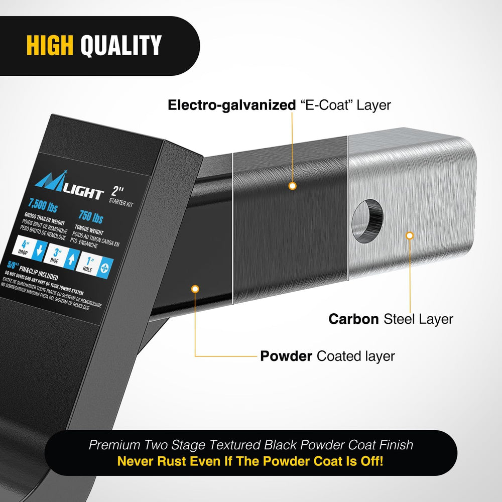 Heavy Duty Trailer Hitch: Offers a gross trailer weight capacity of up to 7,500 lbs and 750 pounds tongue weight, Perfect for towing trailer, campers, hauling motorcycles and ATVs with 2 inch standard hitch receiver.