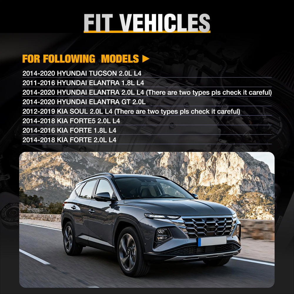 | Compatible with Hyundai | 2014-2020 Hyundai Tucson 2.0L L4 Petrol Sport Utility/2011-2016 Hyundai Elantra 1.8L L4/2014 Hyundai Elantra 2.0L L4 Petrol Hatchback/2013 Hyundai Elantra Gt 1.8L L4 Petrol Hatchback/2014-2020 Hyundai Elantra Gt 2.0L L4 |