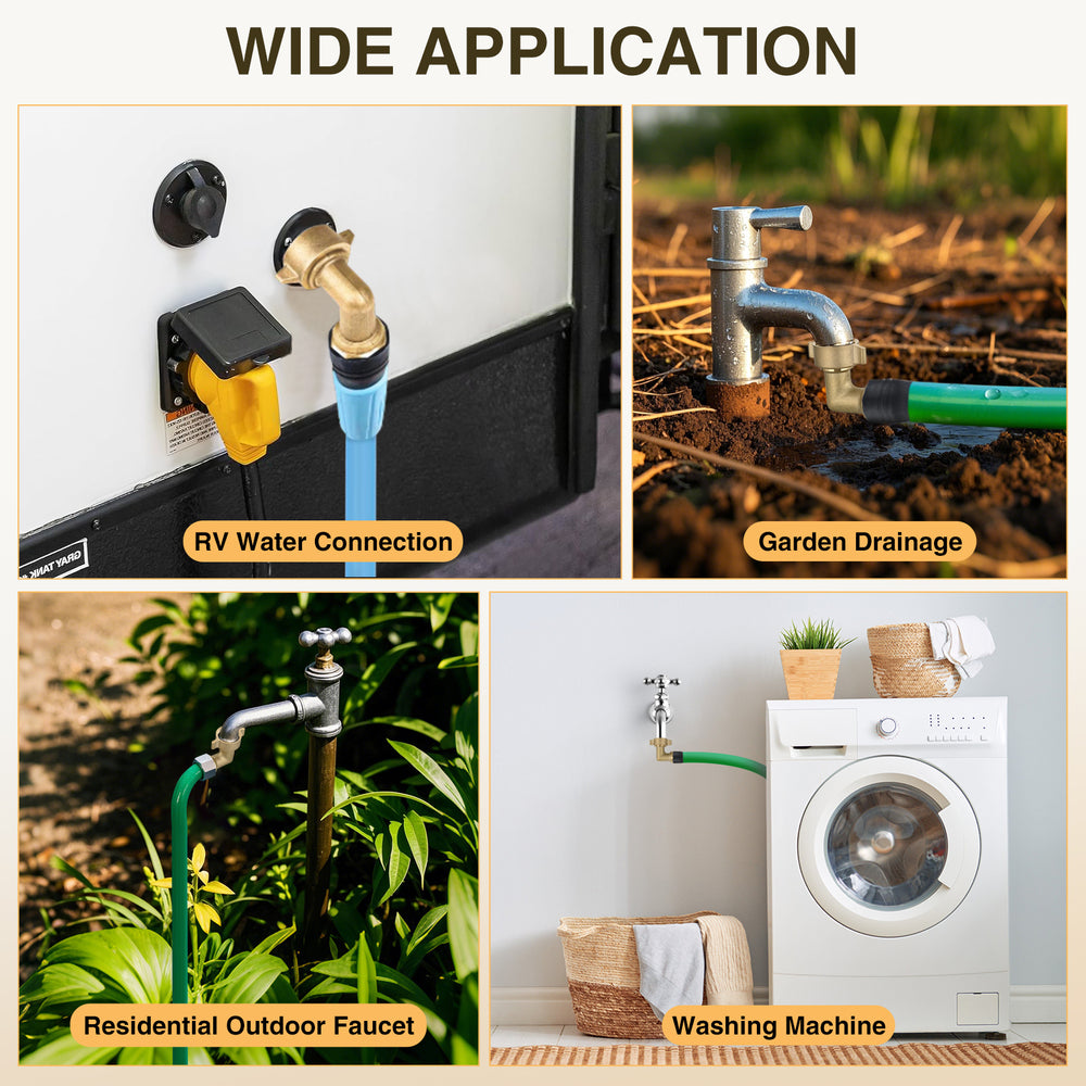 - Package list: 1 x 90 Degree RV Water Hose Elbow, 2 x Sealing Rubber Washer, 1 x Thread Sealing Tape