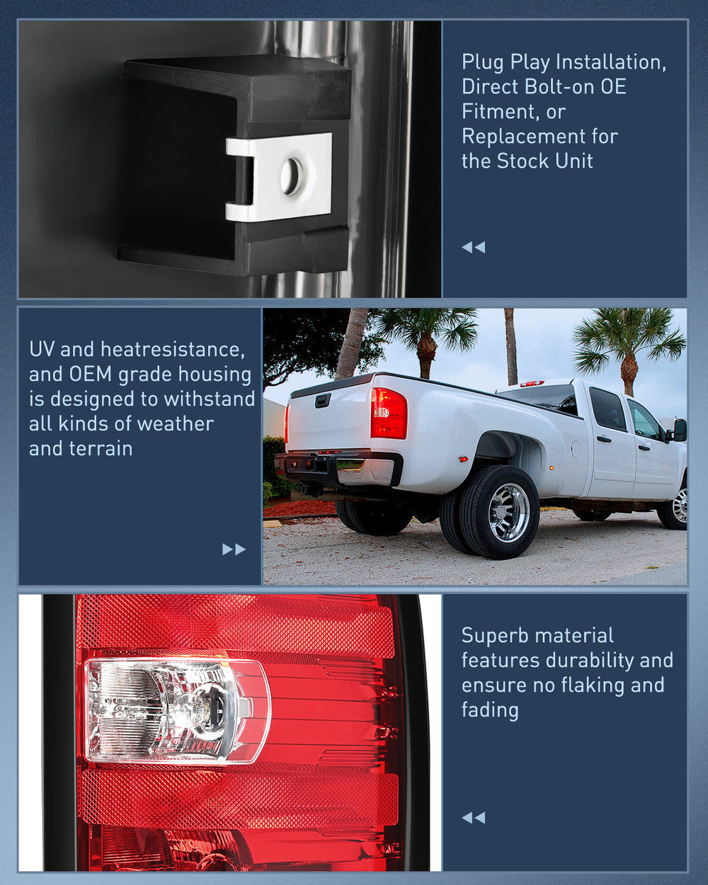 • Compatibility: The headlight and taillight assemblies are compatible with 2007-2013 Chevy Silverado 1500 and 2007-2014 Chevy Silverado 2500HD 3500HD(Note: Does NOT Fit 2007 (Old Body) Classic Models; Fits Models with Halogen Headlights Only). Please confirm the vehicle fitment before ordering