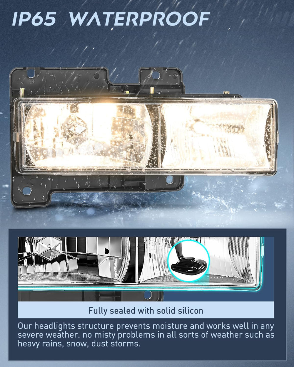 Durability: The high-impact housing withstands shock and vibration. With fully sealed silicon prevents environmental damages including freezing, foggy, fading, corrosion, and provides reliable service in sorts of weather conditions such as rain, snow, or dust storms, enabling your car looks better and drive safer