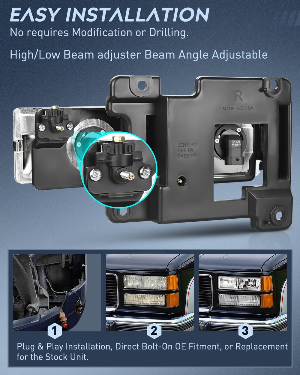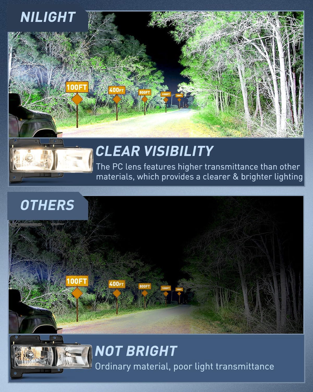 DOT Compliance and safe Driving: To ensure driving safety for you and the oncoming driving circumstance, DOT & SAE compliant. Our headlights provides clearer and further vision to see the wild animals, falling rocks or other obstacles at night. Reduce the possibility of danger.