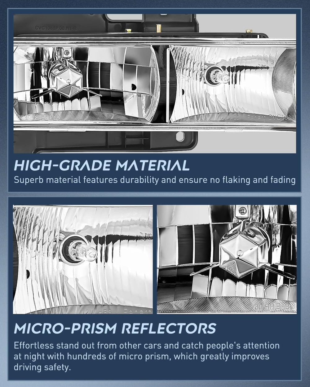 Super bright: The integrated metalized reflectors of this headlight assembly increase light distance for better visibility & driving safety