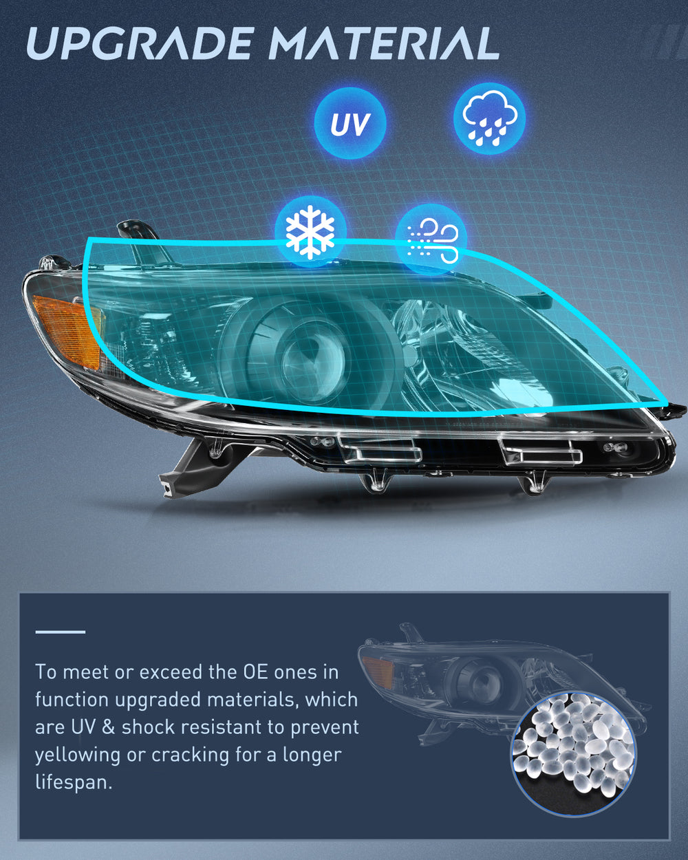 • DOT Compliance And Safe Driving: To ensure driving safety for you and the oncoming driving circumstance, our 2011 2012 2013 2014 2015 2016 2017 2018 2019 2020 Toyota Sienna headlights are DOT & SAE compliant. Our headlights provides clearer and further vision to see the wild animals, falling rocks or other obstacles at night. Reduce the possibility of danger