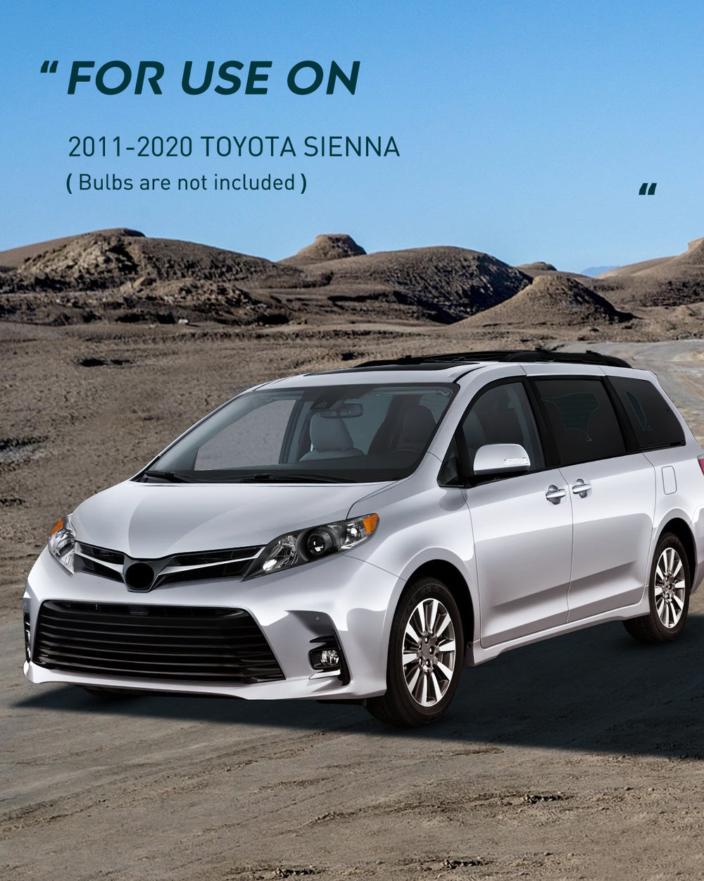 • Compatibility: The headlights assemblies are compatible with 2011-2020 TOYOTA SIENNA. Bulbs Type: High Beam: 9005 bulb; Low Beam: p1; Turn Signal Light: 3457NA bulb. Note: Bulbs are not include