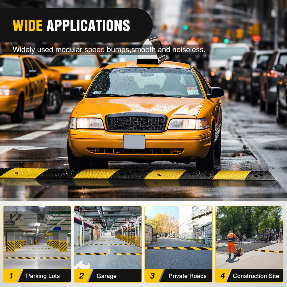 - Wide Application: Driveway speed bump is an essential for public spaces with high traffic volumes. It is widely installed in parking lots, residential areas, schools, highways, roadways, etc. Size: 39.3inch x 12.2inch x 5.1inch