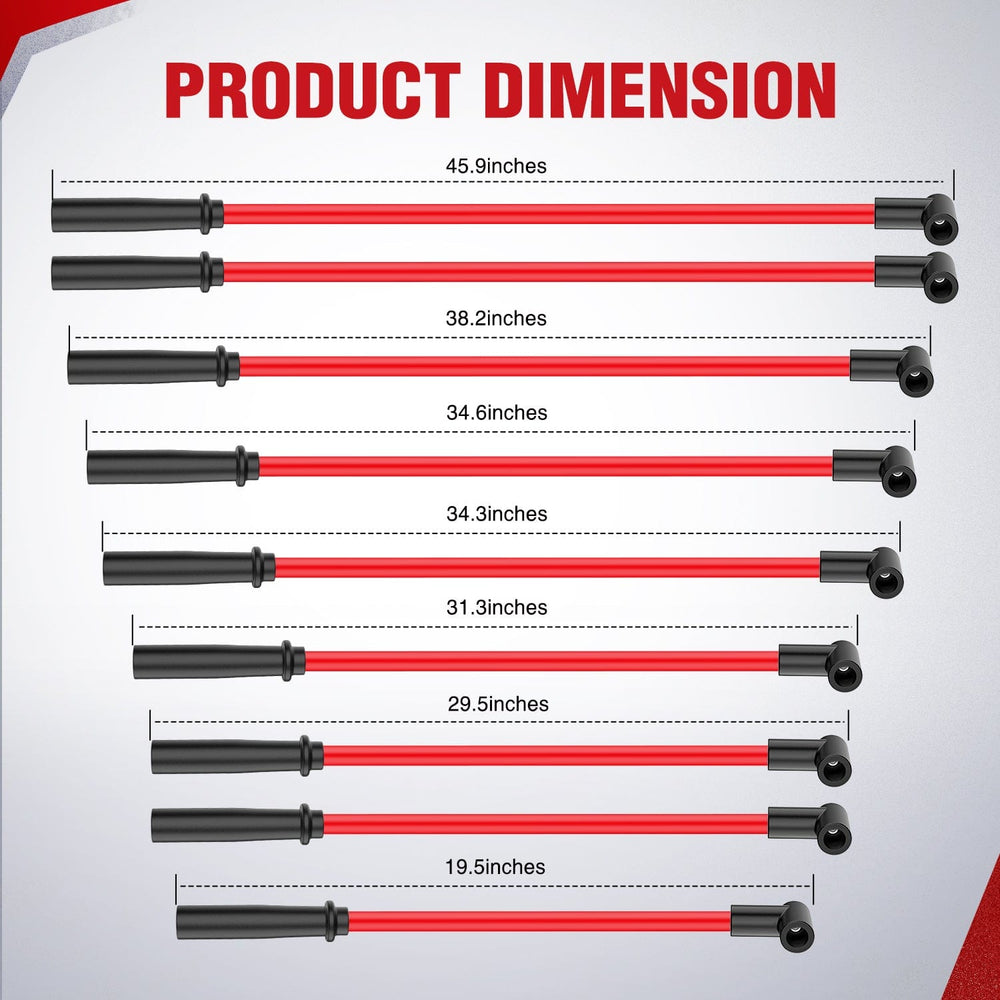 • Wide Application: If your car has problems such as car sharking, difficulty starting, slow acceleration, increased fuel consumption, etc., you may need to replace a new set of spark plug wires