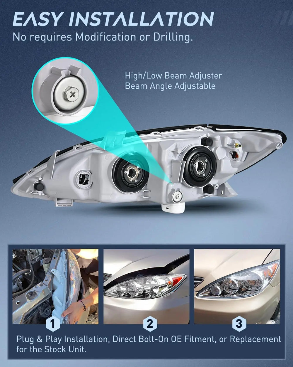 - Package Includes: 1 Pair of Headlight for 2005 2006 Toyota Camry LE XLE SE Headlamp (driver side and passenger side), 1 x User Manual.