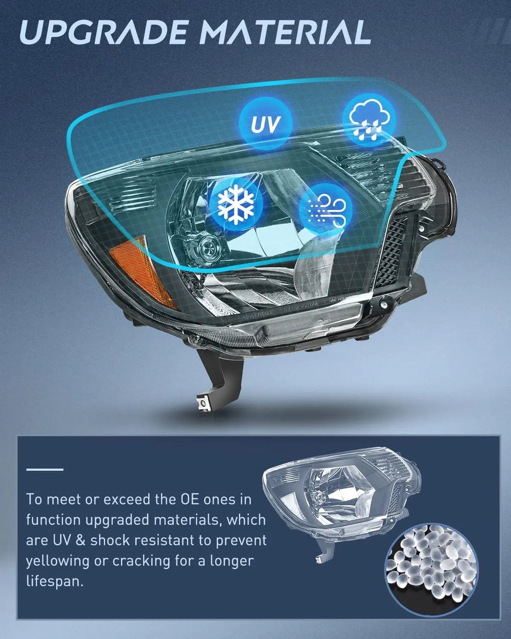 To meet or exceed the OE ones in function upgraded materials, which are UV & shock-resistant to prevent yellowing or cracking for a longer lifespan
