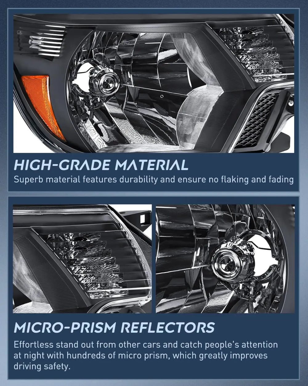 2012 2013 2014 2015 Toyota Tacoma Headlight Assembly Black Housing Amber Reflector Clear Lens