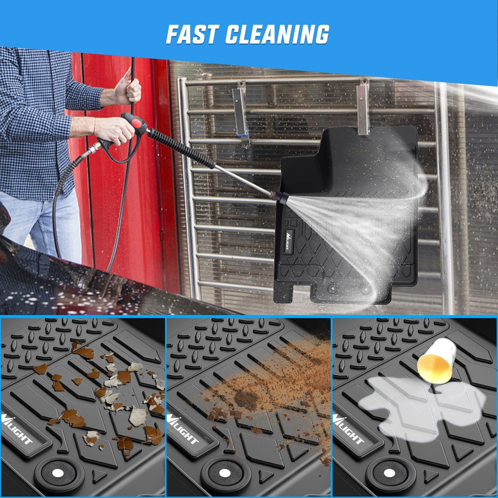 - Fast Cleaning: You can wash off messes that end up on your floor mats in seconds with soap and water. In some cases, a simple spray of the hose will do the trick.