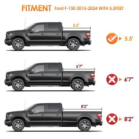 $199.99Unit price /Unavailable5.5ft Soft Roll Up Truck Bed Cover for Ford F150 2015 2016 2017 2018 2019 2020 2021 2022 2023 2024
