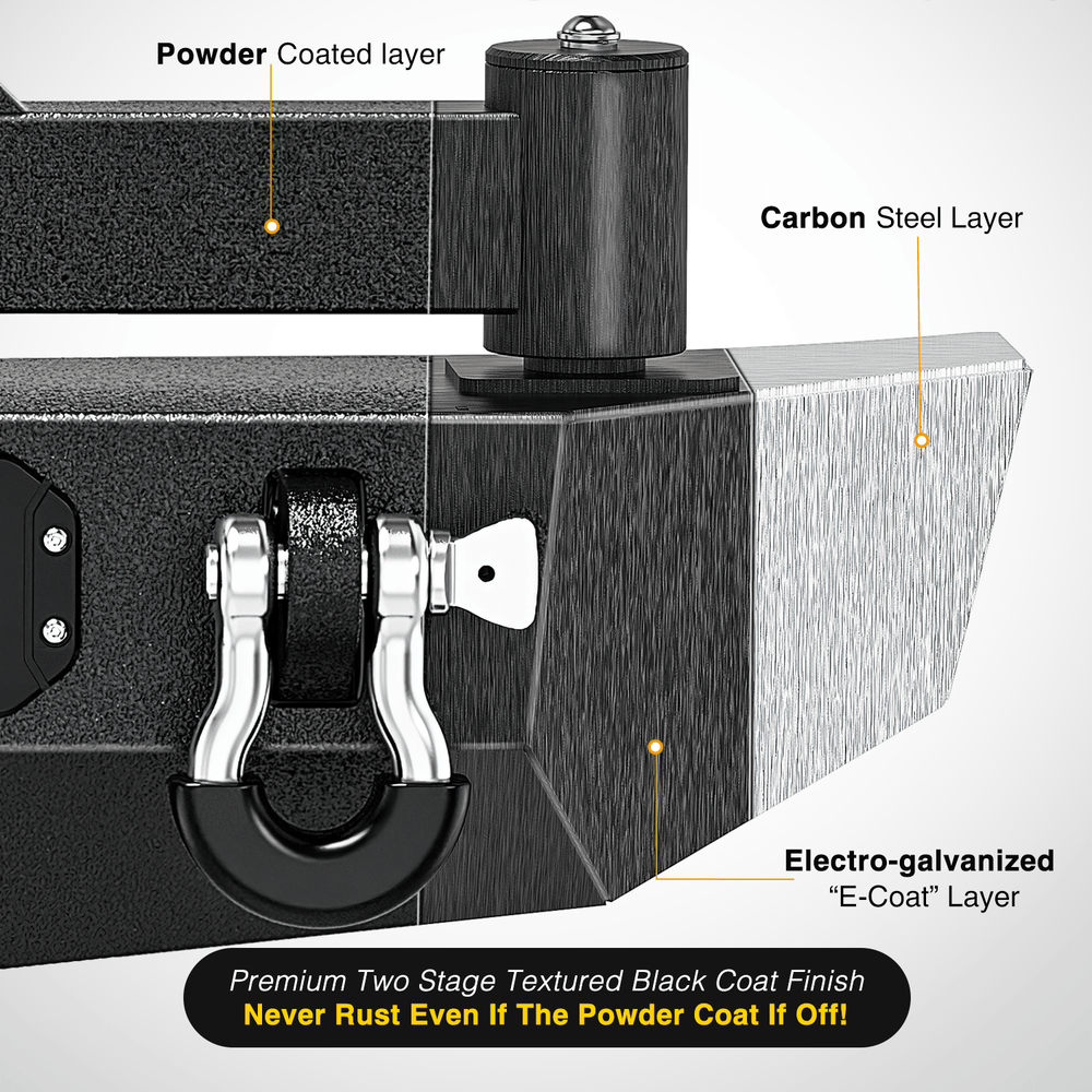 - Heavy-Duty Rear Protection: This Bumper was designed to add protection to your precious Jeep¡¯s lower rear end while providing it with superior towing capabilities with its heavy-duty D-rings. It also gives your vehicle an attractive upgrade in its appearance for added style.