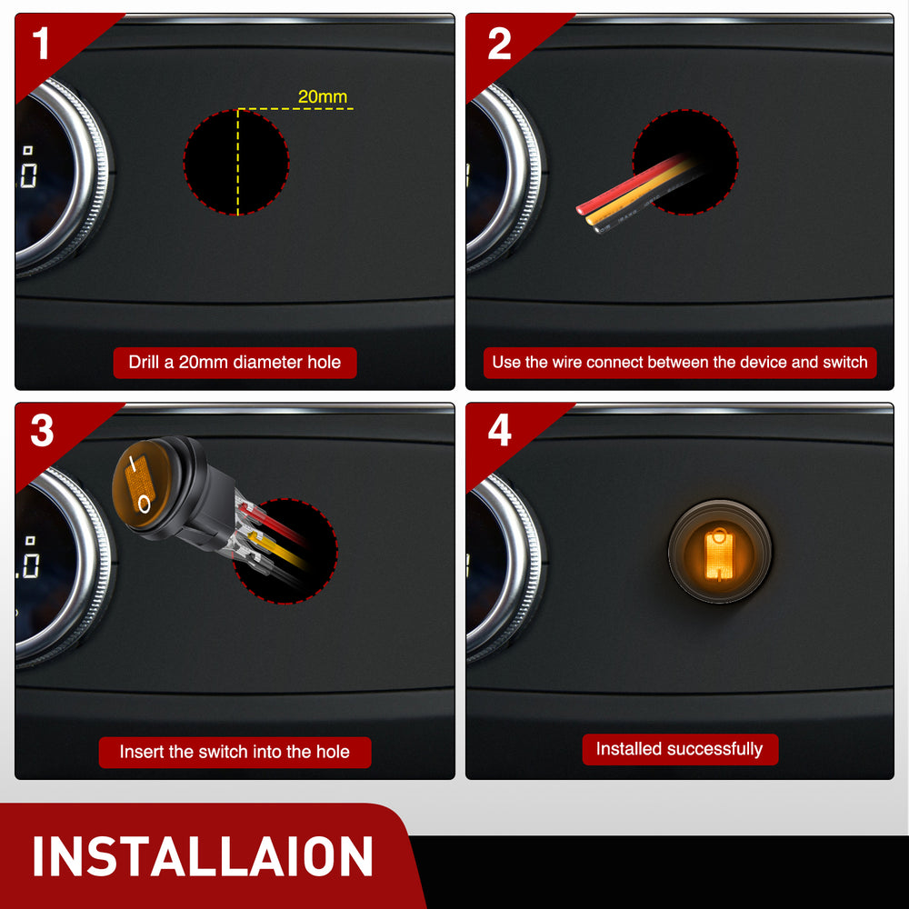 - LED Indicator Light: This round toggle switch comes with 12 volt Yellow LED light, so when you turn the rocker switch 12V on, the LED light also lights up at the same time, which could indicates the working status of the device