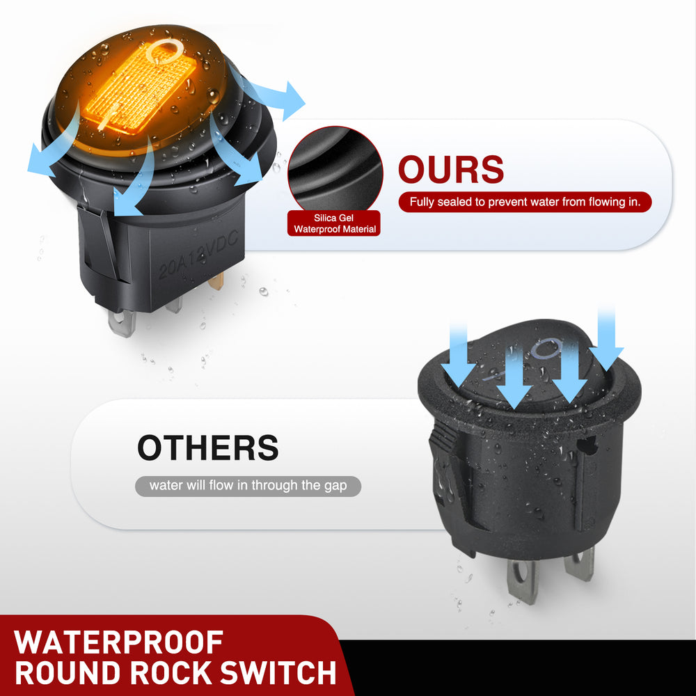 - Application:This round led rocker switch rated at 12V 20A, which can hold most types of circuits, suitable for Car, Truck, Marine boat, UTVs, ATVs etc