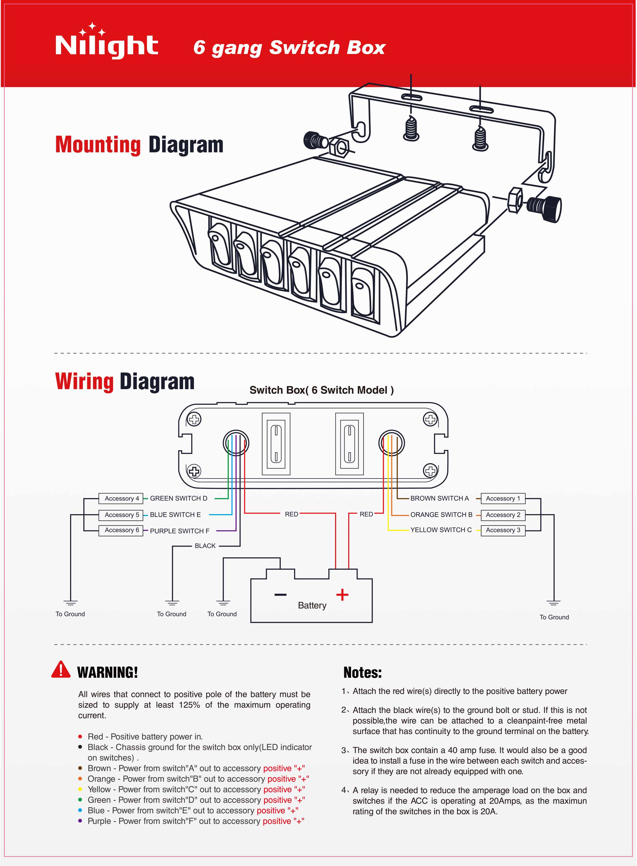 - Adaptable power: From massive off-road lighting setups to heavy-hitting police warning lights, the switch box is the perfect universal solution for all DC power distribution jobs. Two 40 amp rated circuits with two 40AMP fuses for short circuit protection, overload protection, reverse polarity protection, and more security to use.