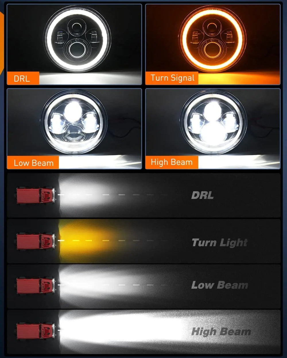 - Wide Applications: Designed to compatible with Jeep Wrangler JK JKU 2007, 2008, 2009, 2010, 2011, 2012, 2013, 2014, 2015, 2016, 2017 2017 with front turn signal lights. And fit motorbikes with 7 inch Headlamps.