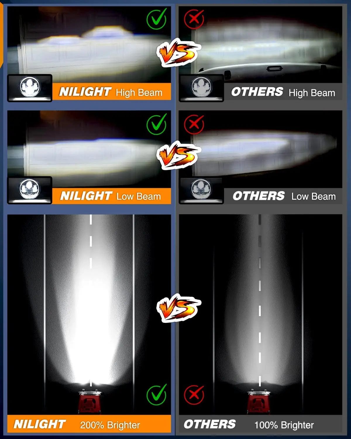 Featuring premium high output LEDs, these Nilight 7" LED Halo Headlights output 5400lumens for the High Beams and 3600 lumens for the Low Beams.