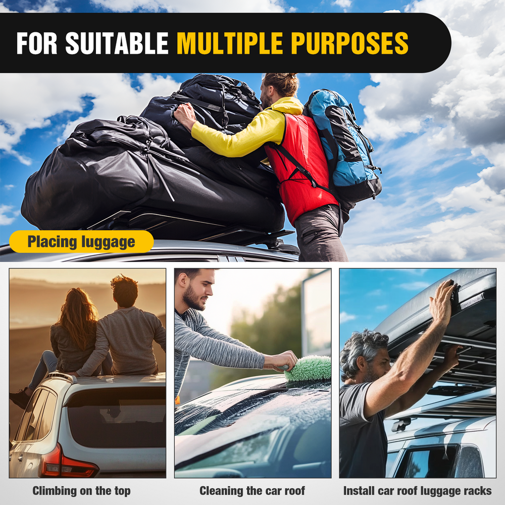 3. Textured surfaces of roof steps platform provide excellent grip, enhanced friction and slip resistance to reduce the risk of slipping. Great ladder accessory for your roof rack.