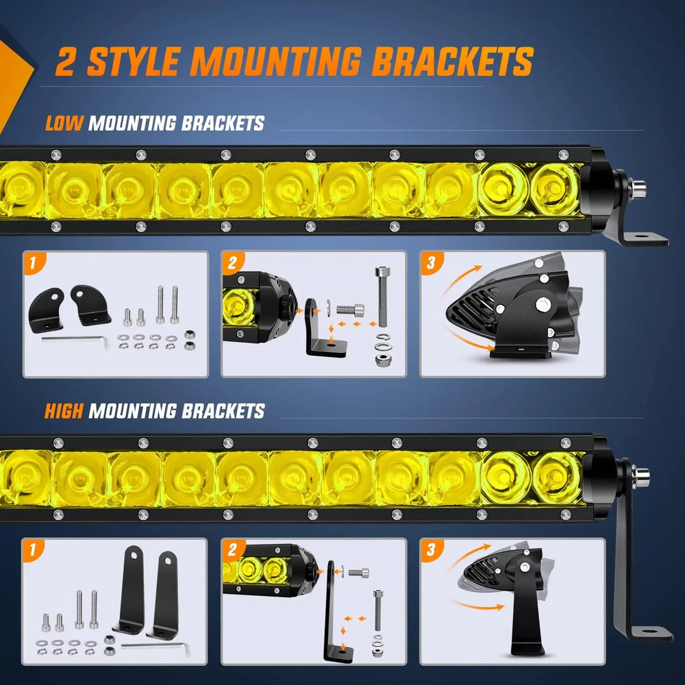 17 Inch 80W 8000LM Amber Slim Spot Flood Led Light Bar | 2 Style Mounts
