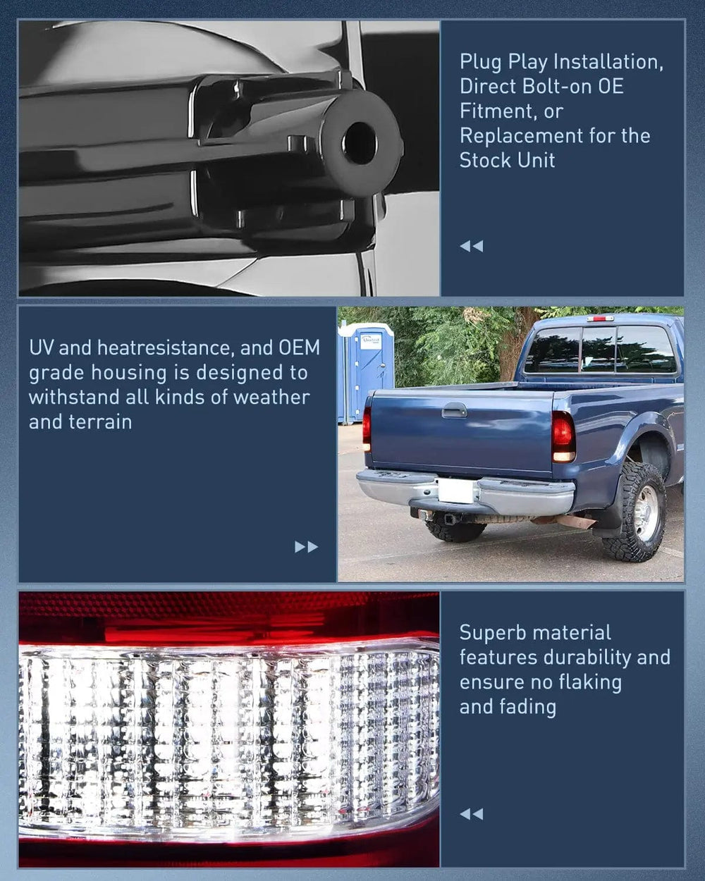 DOT Compliance and safe Driving: To ensure driving safety for you and the oncoming driving circumstance, our taillights are DOT & SAE compliant. Taillight will upgrade your lighting, making your vehicle easier to see for other drivers.