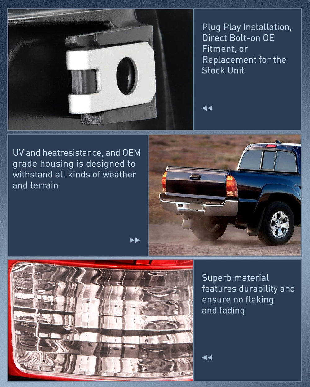 - Compatibility: The taillight assemblies are compatible with 2005 2006 2007 2008 2009 2010 2011 2012 2013 2014 2015 Toyota Tacoma. Please confirm the vehicle fitment before ordering.