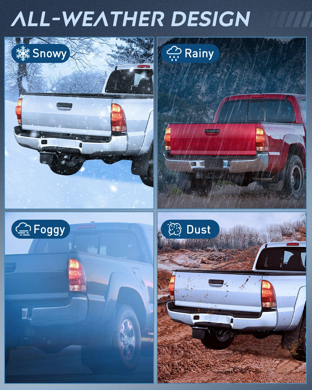 - Durability: The high-impact housing withstands shock and vibration. With fully sealed silicon prevents environmental damages including freezing, foggy, fading, corrosion, and provides reliable service in sorts of weather conditions such as rain, snow, or dust storms, enabling your car looks better and drive safer.