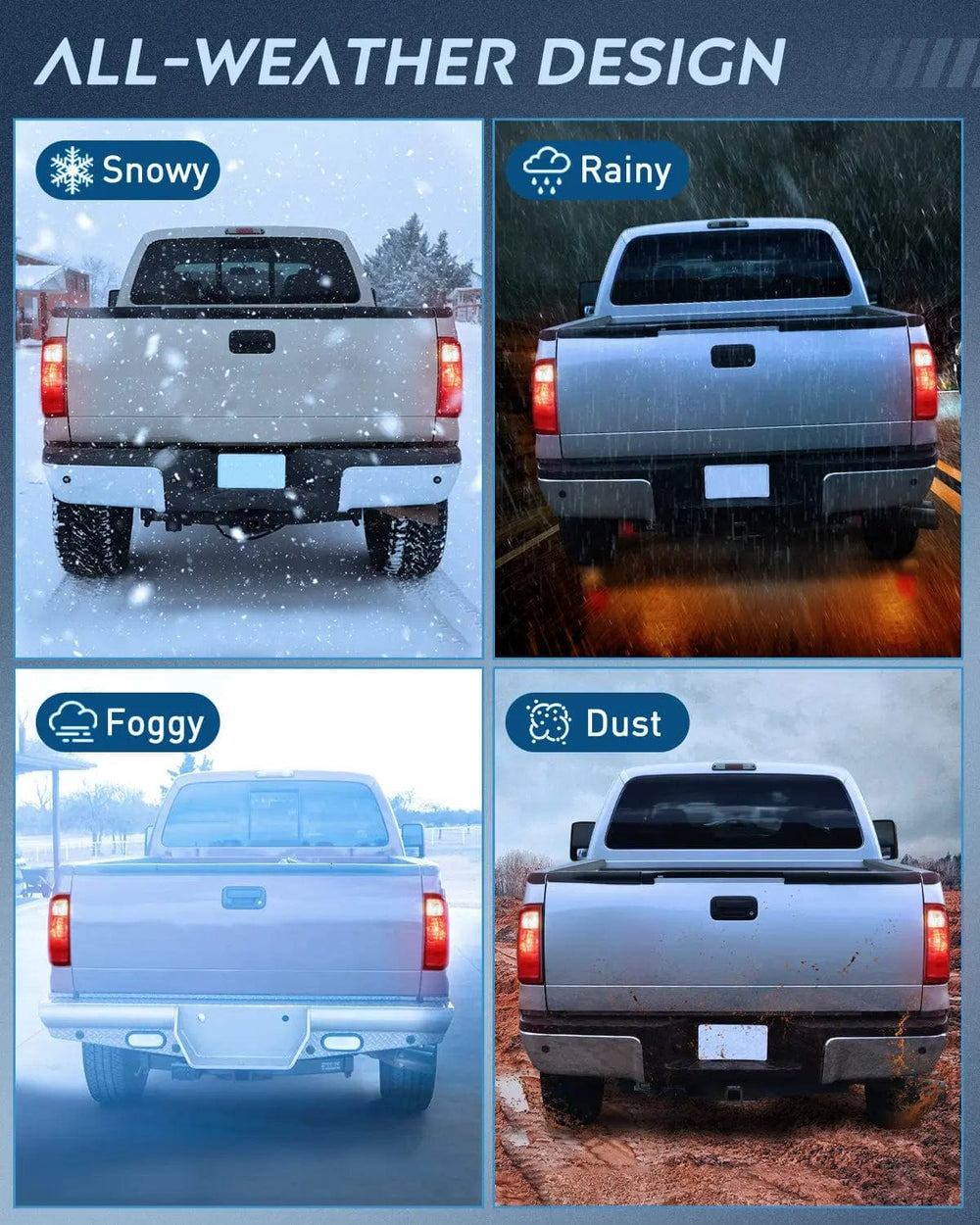 Durability: The high-impact housing withstands shock and vibration. With fully sealed silicon prevents environmental damages including freezing, foggy, fading, corrosion, and provides reliable service in sorts of weather conditions such as rain, snow, or dust storms, enabling your car looks better and drive safer.