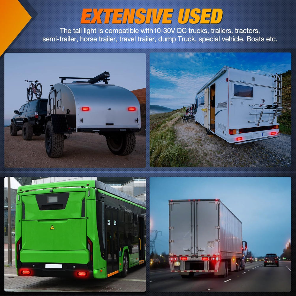 - Widely Used: Fit for almost 10-30V DC Vehicles, such as trucks, trailers, tractors, semi-trailer, horse trailer, travel trailer, dump Truck, camper, RVs, bus, boat, special vehicle, etc
