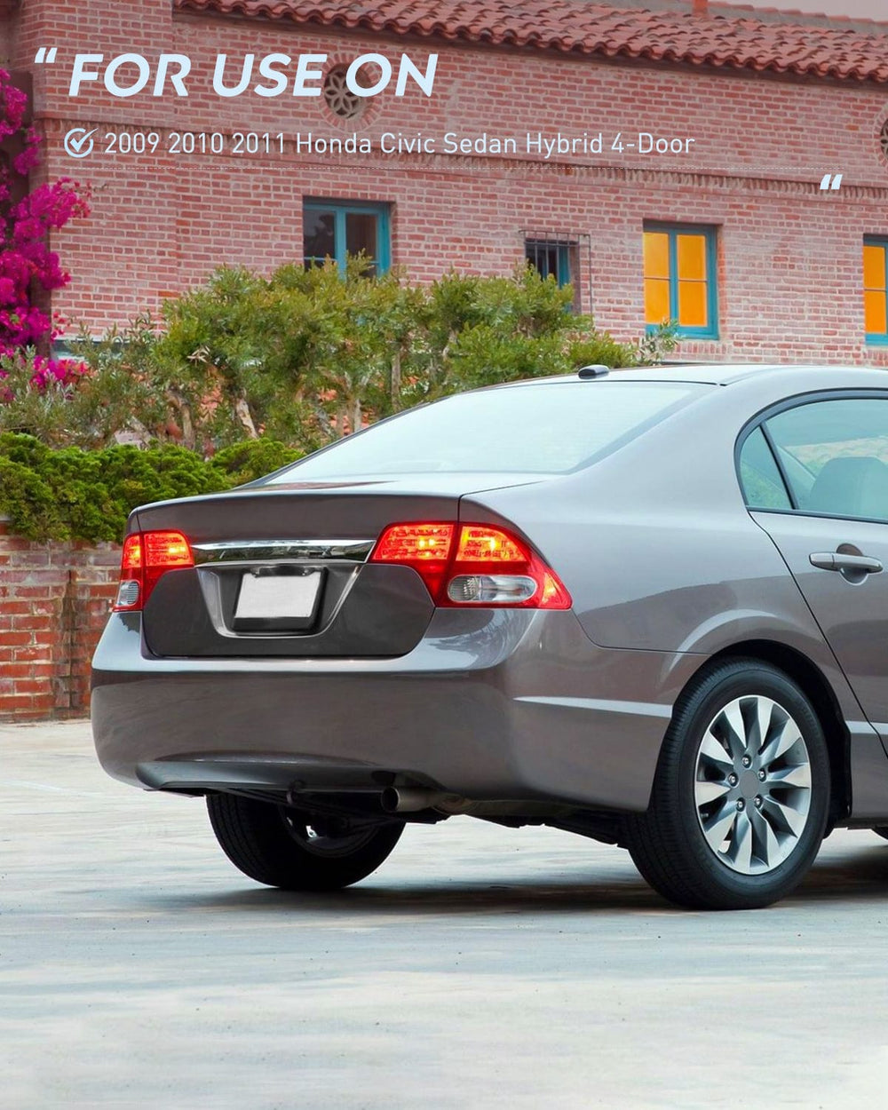 - Compatibility: The taillight assemblies are compatible with 2009 2010 2011 Honda Civic Sedan Hybrid 4 Door. PartsLink Number: HO2818138;HO2819138.OEM Number:33551-SNA-A51;33501-SNA-A51. Please confirm the vehicle fitment before ordering.