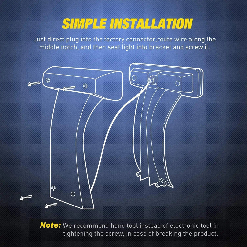 - Simple Installation: Just plug and play with your factory 3rd brake wire connector, route wire along with the middle notch, and then seat light into the bracket and screw it (Note: We recommend a hand tool instead of an electronic tool in tightening the screw, in case of breaking the product.)