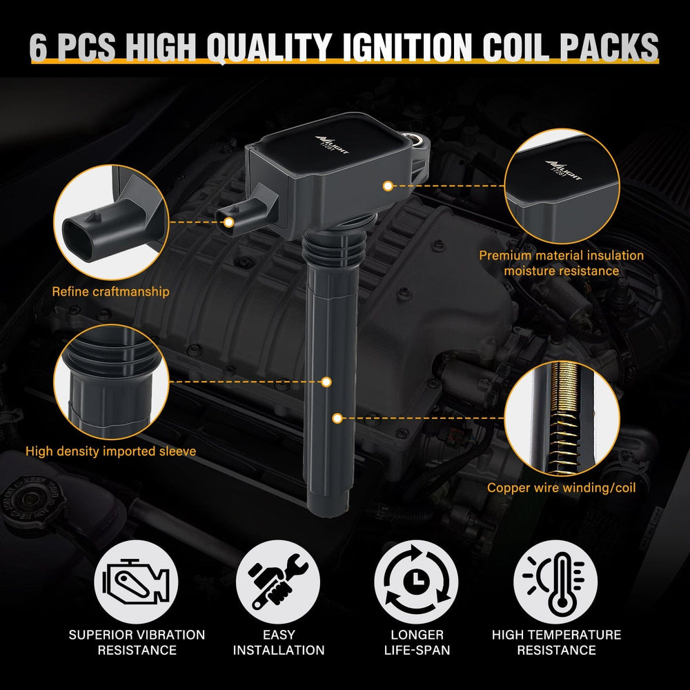 6pcs Ignition Coil Pack UF648 Fit for Jeep Dodge Chrysler 2011 2012 2013 2014 2015 2016 Grand Cherokee Wrangler Town&Country Avenge Challenger Charger Durango RAM1500 V6 3.6L