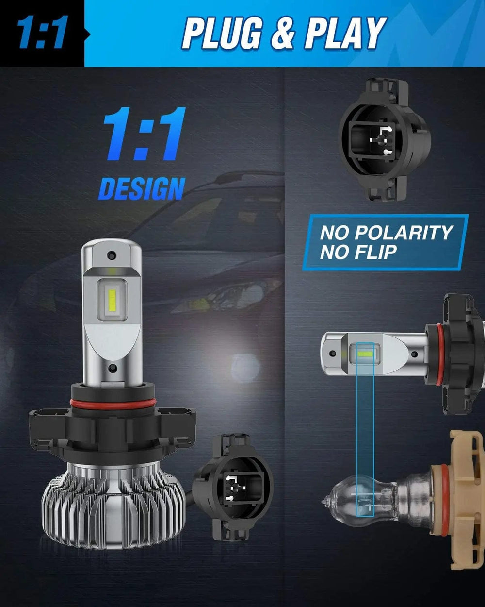 5202/5201/PS24W/9009/PS19W Xenon LED Fog Light Bulbs EF2 Series DRL 60W 6000K | 2 BULBS