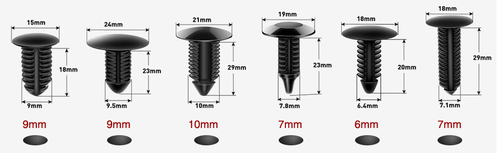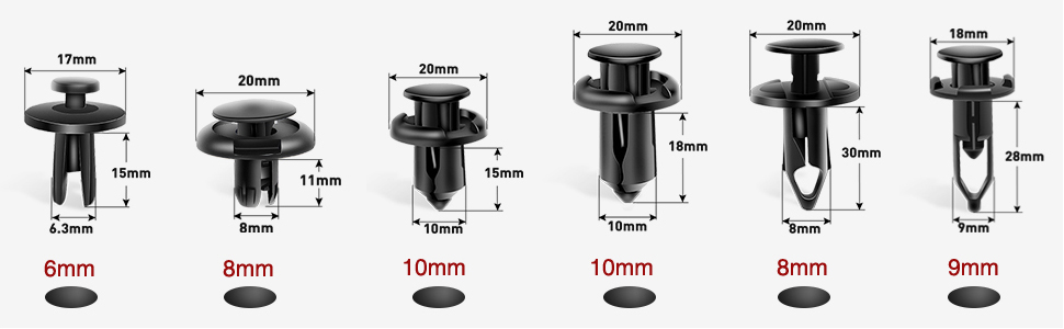- Universal Fit Kit: Package including multiple sizes from 6. 3mm to 10mm among a total 240PCS for most uses, perfect door trim, radiator shield yoke