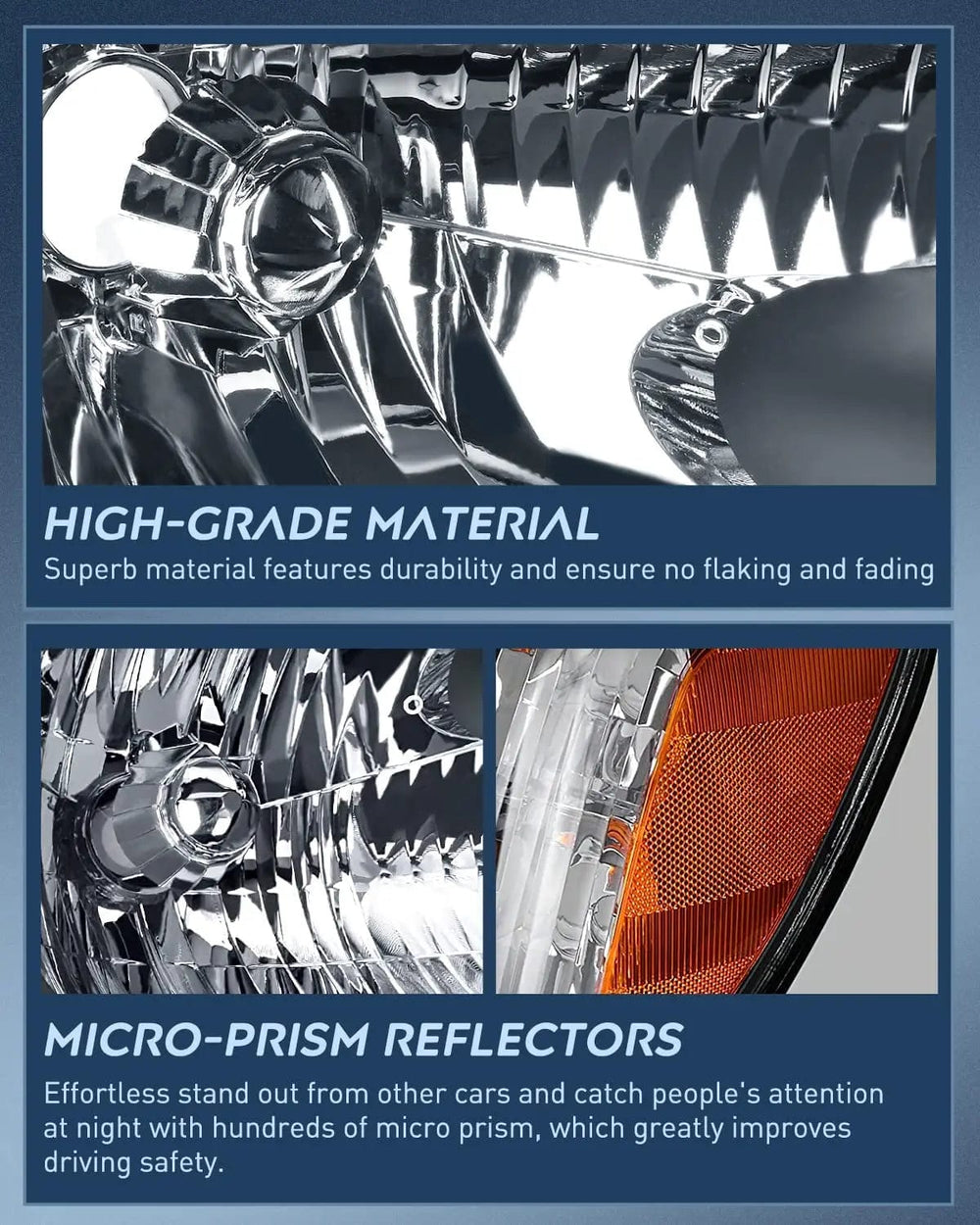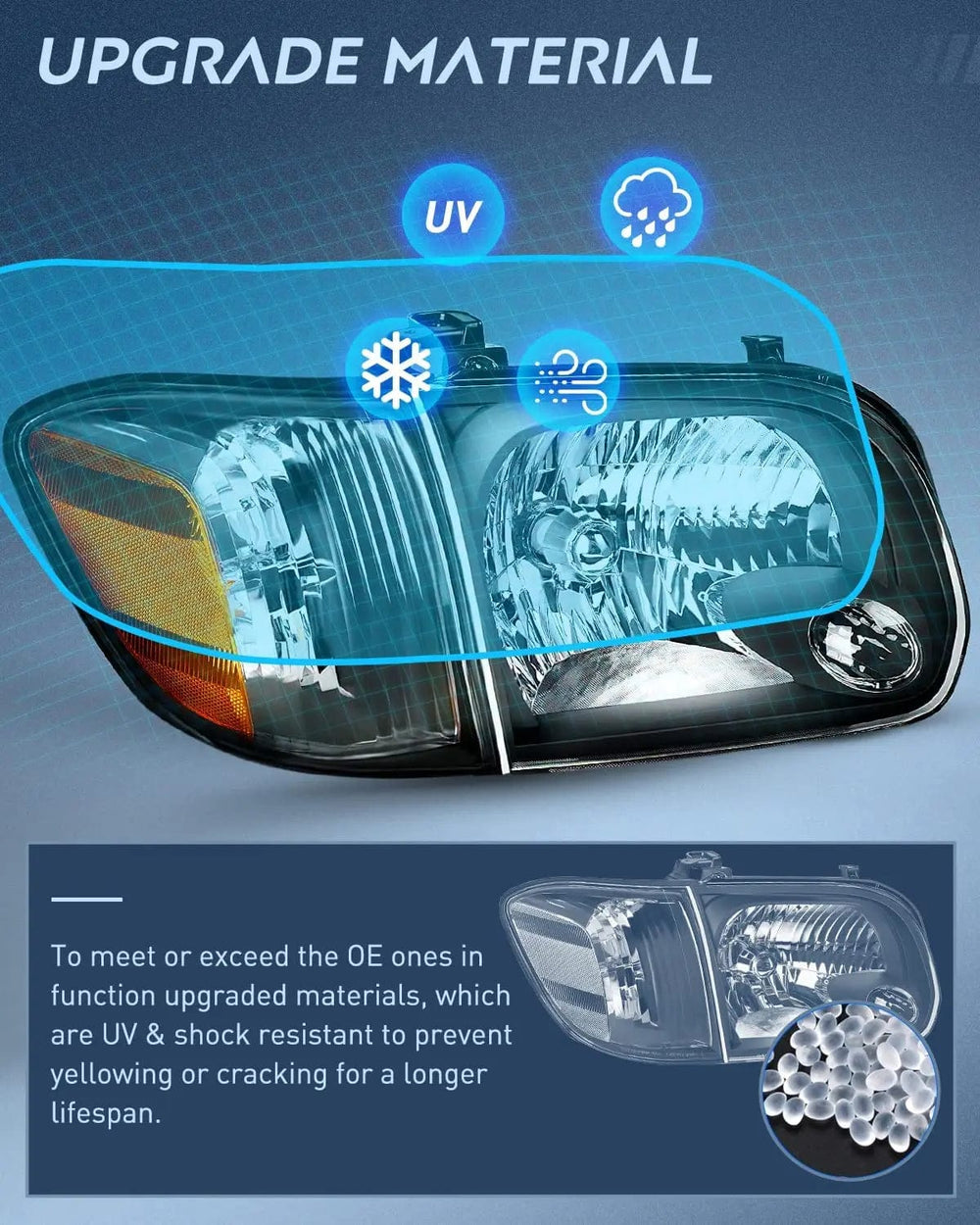 2005 2006 Toyota Tundra 4 Door Double Crew Cab 2005 2006 2007 Sequoia Headlight Assembly Black Case Amber Reflector