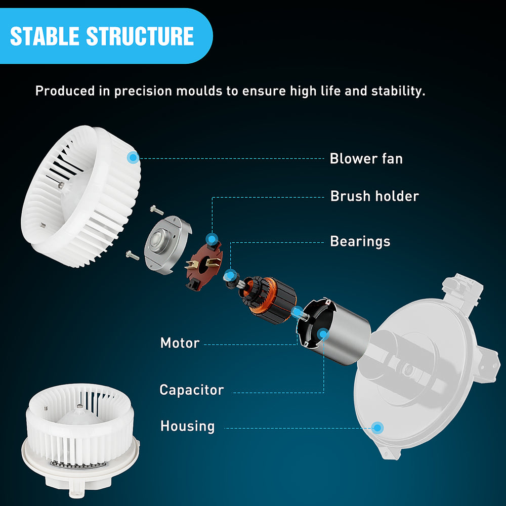 • Excellent Airflow:The precision-engineered design maximizes airflow output, rapidly adjusting your vehicle's interior temperature to your desired comfort level. Whether you need instant warmth in winter or refreshing coolness in summer, our blower fan delivers efficiently and effectively.
