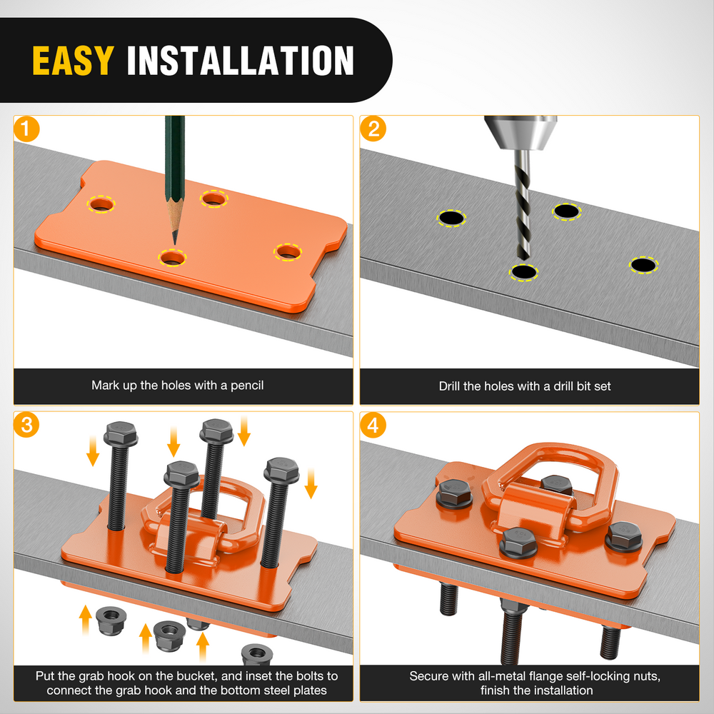 - Easy Installation: 1/2in D Rings Welded to the Backing Plate coming with complete hardware for Installation, you can fix the 1/2in D Rings on your machine with grade 10.9 locking bolts and lock anti-skid nuts easily.