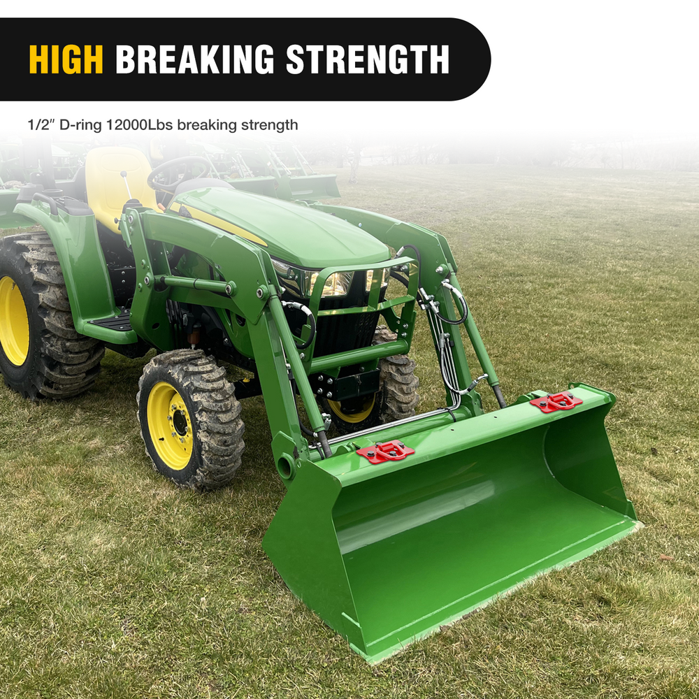 - Application: The 1/2in D Rings Welded to the Backing Plate, fit for almost agricultural vehicle, such as John-Deere Truck, Tractor Bucket, Trailer, Lawn Mowers, RV, UTV, ATV; Mounted on Tractor Bucket, used with chains, straps, ropes, and Ratchet Binders etc. It can also Used As Shackle, is a Good Tractor Bucket Attachments.