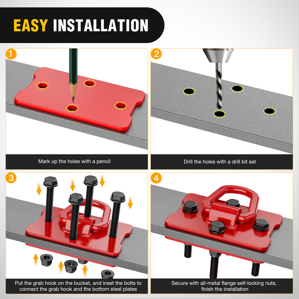 - Easy Installation: 1/2in D Rings Welded to the Backing Plate coming with complete hardware for Installation, you can fix the 1/2in D Rings on your machine with grade 10.9 locking bolts and lock anti-skid nuts easily.