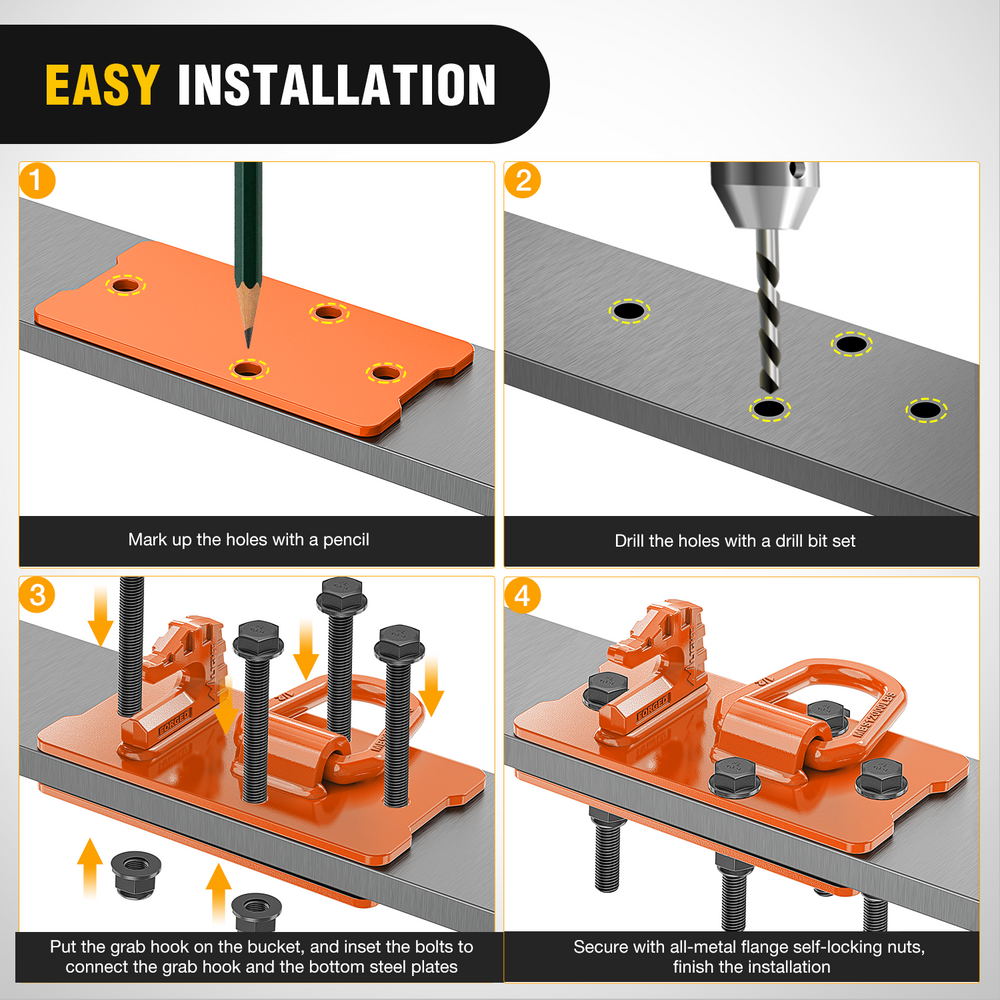 - Easy Installation: Bolt-on Grab Hook coming with complete hardware for Installation, you can fix the grab hook on your machine with grade 10.9 locking bolts and lock anti-skid nuts easily