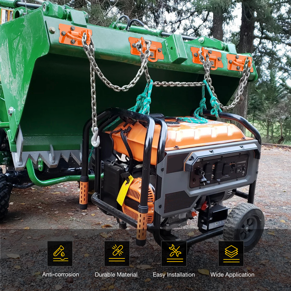 - Application: Tractor Bucket Hooks fit for almost agricultural vehicle, such as John-Deere Truck, Tractor Bucket, Lawn Mowers, RV, UTV, ATV; Mounted on Tractor Bucket, used with chains, straps, ropes, and Ratchet Binders etc. It can also Used As Tow Hooks, is a Good Tractor Bucket Attachments.
