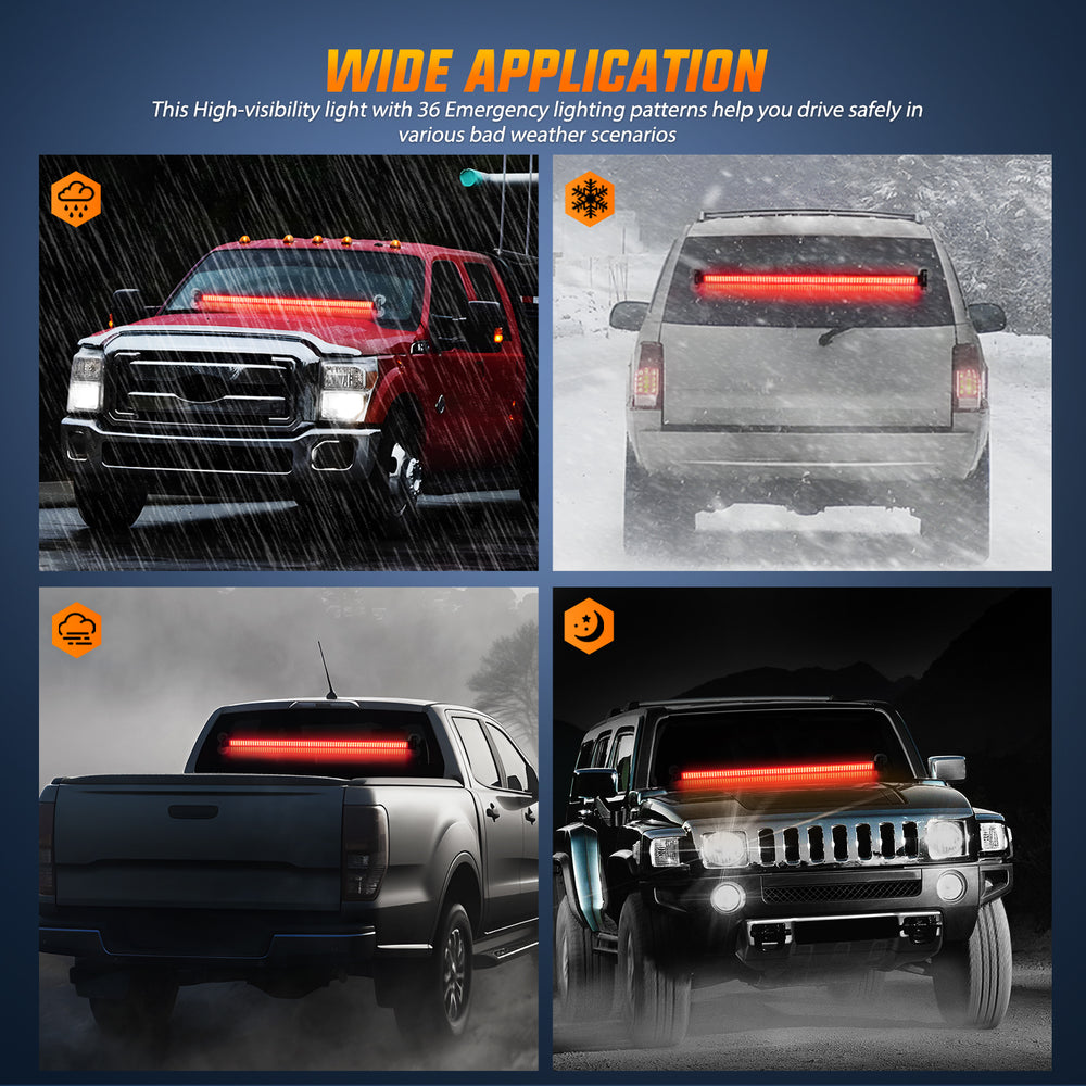 - Wide Application: This emergency traffic light bar is widely used in all 12V-24V vehicles including Hazard Warning, Law Enforcement, First Responder, emergency vehicles, construction vehicles, pickup trucks, vans, trailers, UTV, ATV, construction ,etc