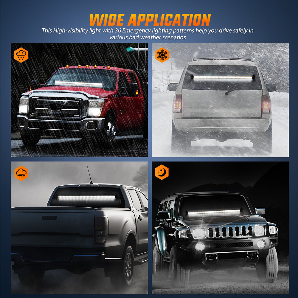 - Wide Application: This emergency traffic light bar is widely used in all 12V-24V vehicles including Hazard Warning, Law Enforcement, First Responder, emergency vehicles, construction vehicles, pickup trucks, vans, trailers, UTV, ATV, construction ,etc